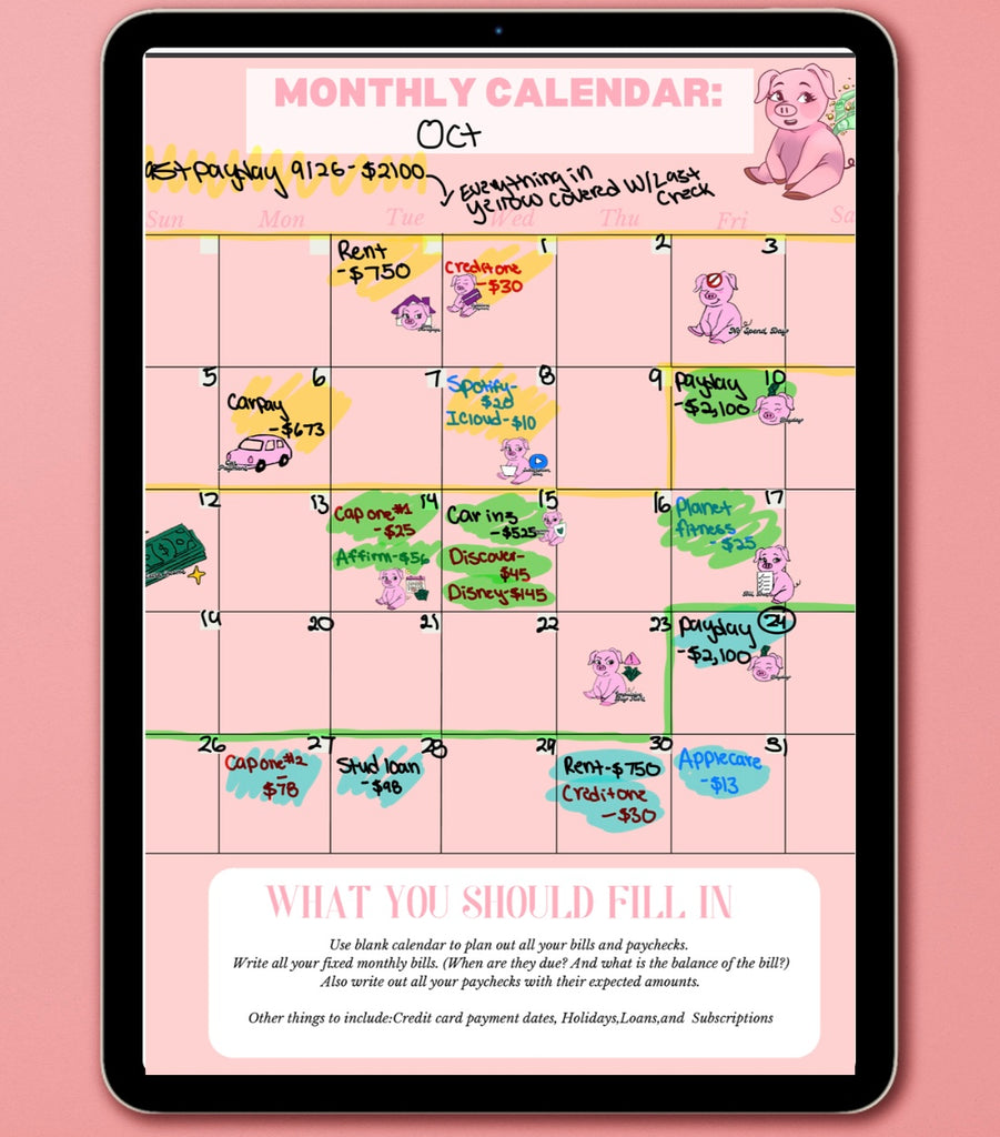 Each sticker was hand drawn on iPad by Jaliyah, ;inspired by our signature Budget Babe piggy mascot. These adorable pigs bring personality and motivation to your planner pages ;because who says budgeting has to be boring?